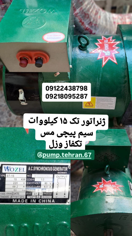 ژنراتور تک ۱۵ کیلووات تکفاز وزل