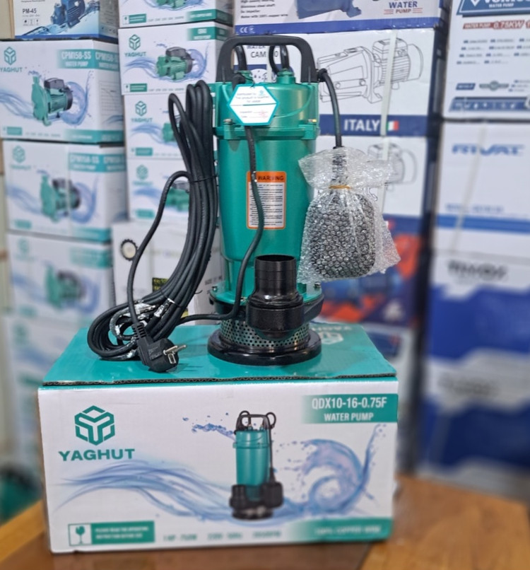 خروجی 2 اینچ دبی 10 متر معکب در ساعت معادل 167 لیتر در دقیقه قابلیت غوطه وری دارد ارتفاع انتقال آب 16 متر قدرت موتور 1 اسب بخار توان موتور 750 وات سرعت موتور 2860 دور در دقیقه قطر خروجی 50 میلی متر جریان 5.2 آمپر